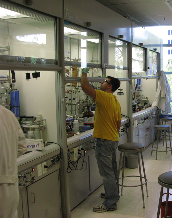 Our lab is adjacent to the Caltech Center for Catalysis and Chemical Synthesis, which features two Symyx Core Modules used by the department for high throughput reaction condition screening.