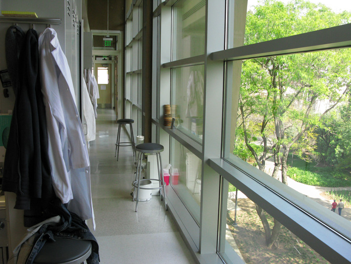 Large windows span the length of our lab, allowing plenty of natural light. Our lab overlooks the scenic San Pasqual Path